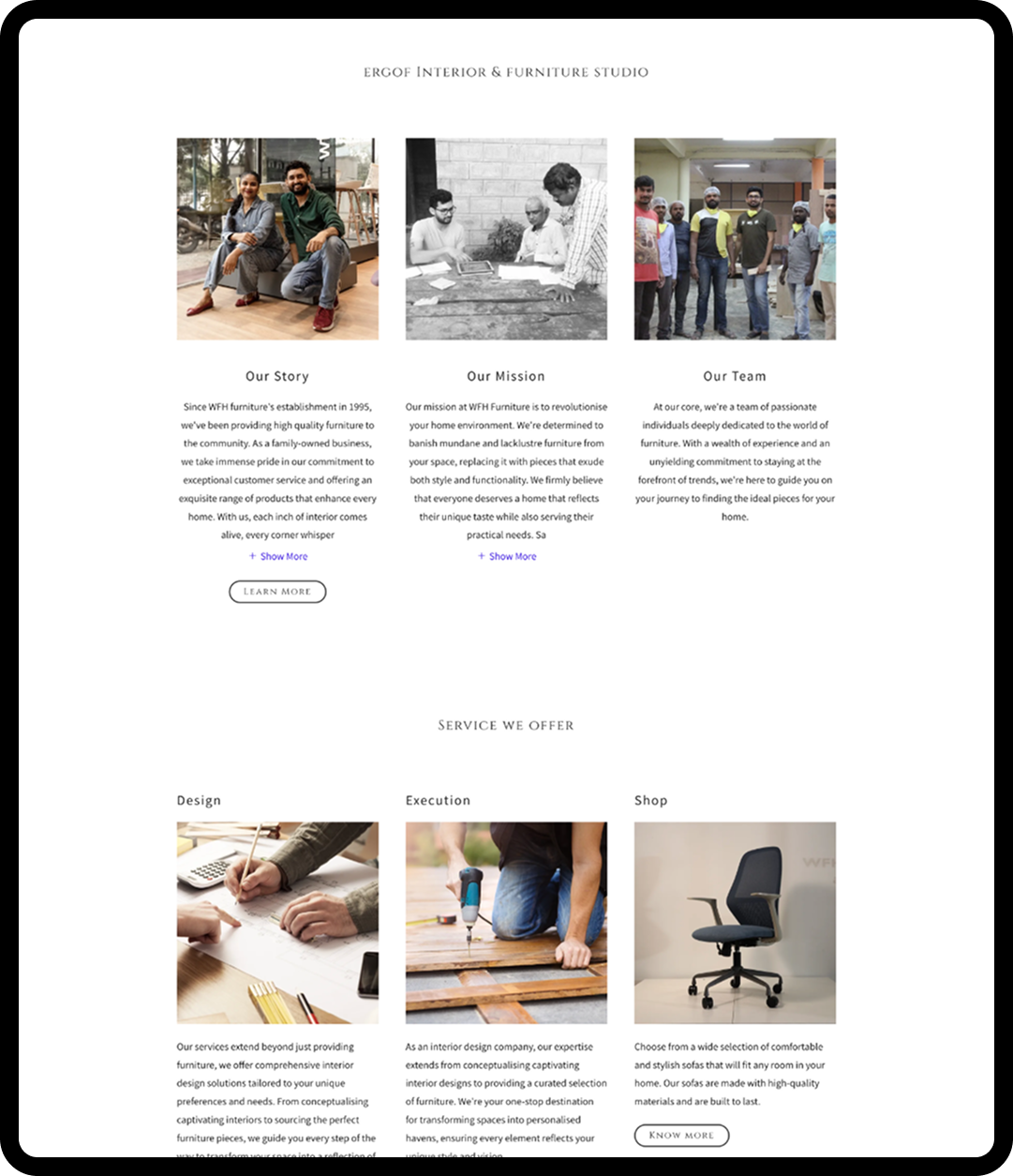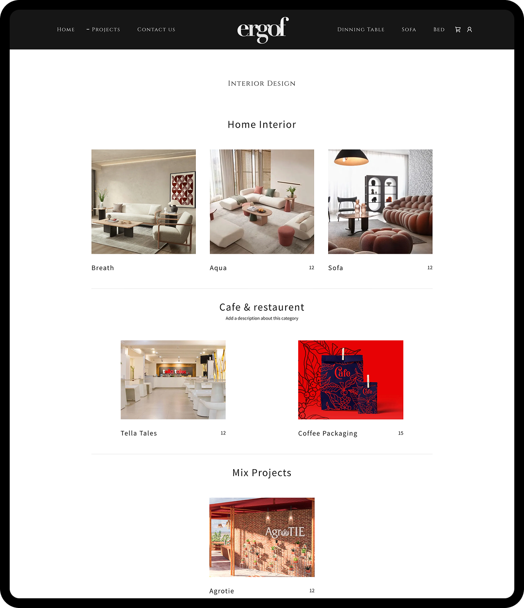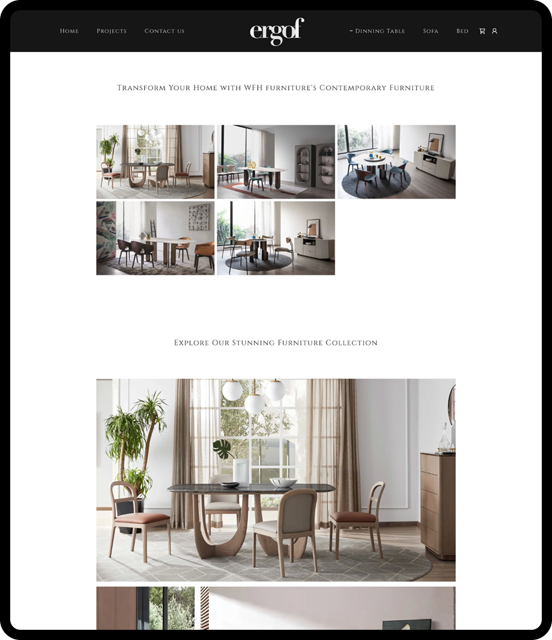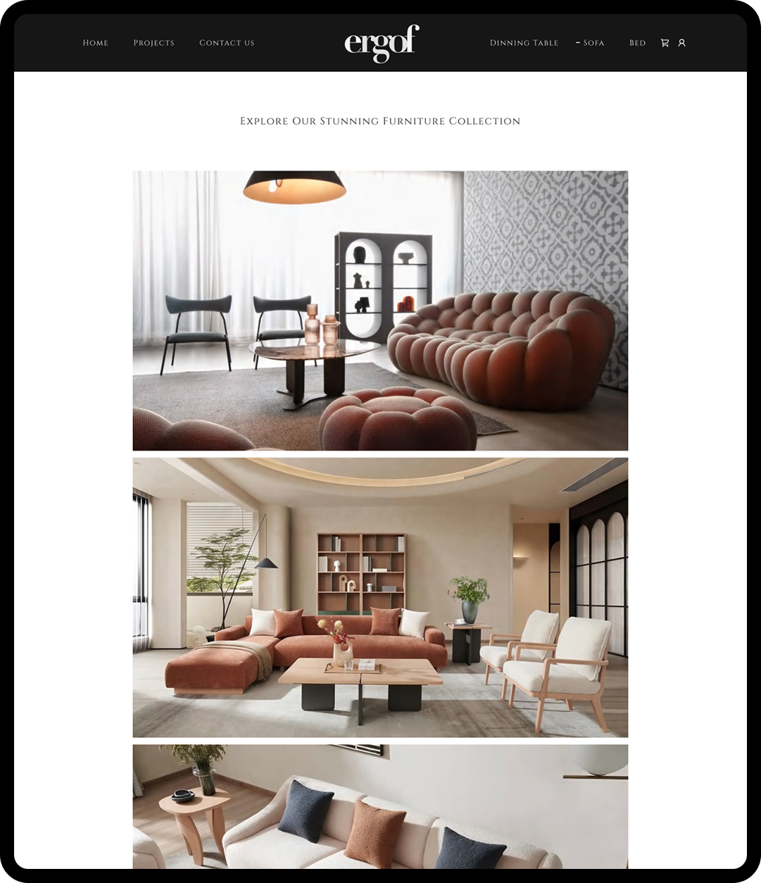 Ergof is an interior design and furniture studio that focuses on creating aesthetically pleasing and functional living spaces. The platform showcases furniture collections and interior design services, helping users explore curated products such as sofas, beds, and dining tables while also discovering complete interior solutions.